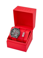 The Diesel Men’s Griffed Chronograph Watch is designed for men who appreciate bold style and functional precision. Its 48mm stainless steel case houses a sleek black dial with chronograph subdials for minutes, seconds, and 24-hour tracking. Powered by reliable quartz movement, it ensures accurate timekeeping for everyday wear. Available with versatile bands—stainless steel, genuine leather, or silicone—each strap offers comfort and style, with adjustable sizing for a personalized fit. The included red nylon bracelet in select gift sets adds a modern, sporty accent. Scratch-resistant mineral crystal protects the dial, while water resistance up to 50m allows safe use during shallow swimming or daily exposure to water. Combining Diesel’s signature industrial-inspired design with practicality, the Griffed chronograph watch is ideal for men who want a statement accessory that transitions seamlessly from casual to formal occasions.
