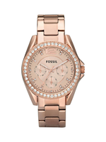 Fossil Riley Women’s Multifunction Watch – Rose Gold Stainless Steel, Crystal Bezel, 38mm