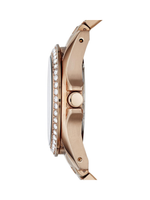 The Fossil Women’s Riley Multifunction Watch is a statement of modern glamour and everyday versatility. Designed with Fossil’s signature bold aesthetic, this timepiece features a 38mm rose gold-tone stainless steel case adorned with a dazzling 45-stone crystal-set topring that adds a refined sparkle to any outfit.