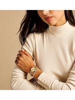 Timeless elegance meets thoughtful gifting with the Fossil Women’s Carlie Quartz Stainless Steel Watch & Bracelet Gift Set. Designed to balance everyday wearability with refined sophistication, this beautifully curated set includes a 28mm gold-tone stainless steel watch and a coordinating crystal tennis bracelet for effortless styling. The Carlie watch features a sleek gold dial with matching accents, powered by a precise quartz three-hand movement for reliable timekeeping. A durable stainless steel bracelet with Adjust-O-Matic closure allows easy, tool-free sizing for a comfortable fit. Finished with a scratch-resistant mineral crystal and water resistance up to 50 meters, this Fossil women’s gold watch set is perfect for daily wear, special occasions, or meaningful gifting—an elegant addition to any jewelry or watch collection.