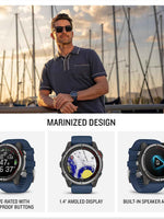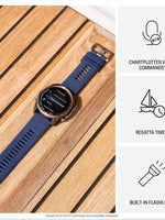 The Garmin quatix® 8 (51mm, Marine Edition) is a powerful GPS smartwatch built for sailors, anglers, and adventure seekers. Featuring a large, bright 1.4-inch AMOLED display, it provides crystal-clear visibility in sunlight and low-light conditions. With direct integration to Garmin chartplotters, you can control key functions like autopilot, Fusion® audio, and waypoint marking right from your wrist. The rugged marine-grade design is water-resistant (up to 10 ATM) and features a built-in LED flashlight for night operations.