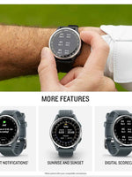 Take your performance on and off the course to the next level with the Garmin Approach S44 Essential Golf Watch. Featuring a sharp 1.2-inch AMOLED display and touch control, this smartwatch delivers clear visuals and intuitive navigation. Built-in GPS ensures precise course mapping, while sports and fitness tracking monitor your activity, steps, and heart rate throughout the day. The silver aluminum bezel paired with the Twilight silicone band provides a sleek, durable design for both athletic and casual wear. Connectivity options include Bluetooth and USB for seamless syncing with the Garmin app. This model also comes bundled with wireless Air Buds, allowing you to stay entertained or take calls on the go. Perfect for golfers, athletes, and fitness enthusiasts, the Approach S44 combines style, performance, and technology in a premium smartwatch.