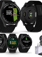 Elevate your golf game with the Garmin Approach S50 Advanced Golf Watch. Featuring a 1.2-inch AMOLED display and a sleek slate aluminum bezel with Black ComfortFit nylon band, this smartwatch delivers precision, comfort, and style. With built-in GPS and detailed course maps, it provides distances to hazards, greens, and doglegs across thousands of courses worldwide. Track your performance with advanced stats, swing metrics, and fitness features for a holistic approach to your game. The S50 also functions as a smartwatch, offering notifications, Bluetooth connectivity, and activity tracking off the course. This bundle includes wireless Air Buds, providing the perfect companion for practice sessions or daily life. Lightweight, durable, and stylish, the Garmin Approach S50 is designed for golfers who want technology, performance, and convenience in one premium package.