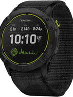 The Garmin Enduro is a premium multisport GPS watch designed for endurance athletes and adventure enthusiasts. Built for ultralong performance, it features solar charging capabilities and delivers up to 80 hours of battery life in GPS mode, ensuring you stay powered through the toughest trails. The watch provides advanced training metrics, heart rate monitoring, and stress tracking to optimize performance and recovery. Its lightweight Carbon Gray DLC titanium case paired with a durable UltraFit nylon band ensures both comfort and durability during prolonged activity. Bluetooth connectivity allows seamless syncing with your smartphone for notifications, while onboard navigation and GPS accuracy keep you on track during outdoor adventures. Whether running, cycling, hiking, or multisport training, the Garmin Enduro offers unmatched endurance, reliability, and functionality for athletes seeking peak performance.