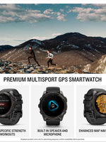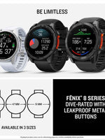 The Garmin fēnix® 8 Sapphire AMOLED (51 mm) is the ultimate multisport smartwatch for athletes, explorers, and professionals who demand performance without compromise. Crafted with a lightweight yet rugged Carbon Gray DLC Titanium case and a sapphire lens, it delivers premium durability with a sleek design. The brilliant AMOLED display provides crisp visibility in any environment, while the built-in LED flashlight ensures added safety during night workouts or expeditions. With dive-rated water resistance, advanced GPS navigation, SatIQ™ technology, and preloaded maps, the fēnix 8 is built to take you from mountain peaks to ocean depths. Its comprehensive health suite tracks heart rate, sleep, respiration, stress, Pulse Ox, and more, while adaptive training features like real-time stamina, recovery time, and race prediction keep you at your best. With multi-week battery life, Garmin Pay™, music storage, and smart notifications, the fēnix 8 is your all-in-one adventure companion.