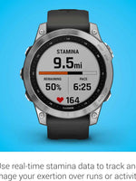The fenix 7 features a responsive touchscreen and button controls, providing seamless navigation during workouts, hikes, and outdoor adventures. Equipped with built-in sports apps, HIIT training, PacePro™, ClimbPro, and real-time stamina insights, it helps you push performance limits while tracking recovery.