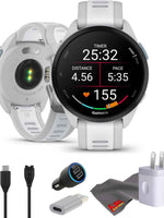 The Garmin Forerunner 165 GPS Running Smartwatch is designed for runners and fitness enthusiasts who want precision tracking and a comprehensive health overview. Its 1.2-inch display delivers clear visuals for metrics, notifications, and guided workouts. With built-in GPS and over 25 indoor/outdoor sports apps, you can track running, cycling, swimming, and more while receiving real-time insights into your training performance. Monitor your wellness with heart rate tracking, recovery insights, and daily training metrics. This bundle includes USB charging adapters, a microfiber cleaning cloth, USB car adapter, and USB3.0 to Type-C female adapter, providing everything you need to stay connected and powered on the go. Lightweight, durable, and stylish in Mist Gray/Whitestone, the Forerunner 165 is ideal for men and women seeking a GPS smartwatch that blends fitness, convenience, and smart features.