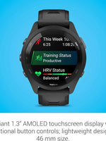 Garmin Forerunner 265 Running Smartwatch – Black & Powder Gray, AMOLED Display, Advanced Training Metrics, GPS & Recovery Insights