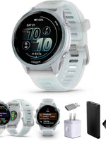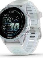 The Garmin Forerunner 570 Running Smartwatch (42mm) blends advanced performance tracking with modern design for athletes and fitness enthusiasts. Featuring a sleek cloud blue aluminum bezel with a translucent whitestone/cloud blue band, it delivers both durability and style.
