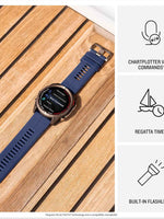 The Garmin quatix 8 is a high-end marine smartwatch designed for boating enthusiasts and professionals who demand precision and performance. Its bright 1.4-inch AMOLED display ensures crystal-clear visibility even in sunlight, while chartplotter controls allow seamless interaction with compatible marine electronics for navigation and vessel management.