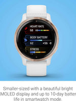 Garmin Venu 2S GPS Smartwatch – Rose Gold Bezel with White Silicone Band, Smaller Size, Advanced Health & Fitness Tracking