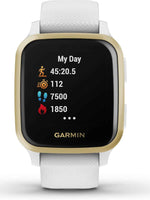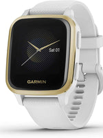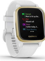 Stay active, connected, and in style with the Garmin Venu Sq GPS Smartwatch in Light Gold and White. This sleek, heart-shaped smartwatch features a bright touchscreen display and built-in GPS, allowing you to accurately track runs, walks, cycling, and other outdoor activities. Monitor your health and fitness with activity tracking, including heart rate monitoring, steps, calories, and sleep analysis. The lightweight design ensures all-day comfort, while Bluetooth connectivity keeps you synced to notifications and apps. With up to 6 days of battery life, the Venu Sq provides long-lasting performance without frequent charging. Available in multiple colors and styles, it combines premium functionality, sporty aesthetics, and Garmin reliability—perfect for casual wear, workouts, or daily activity tracking.