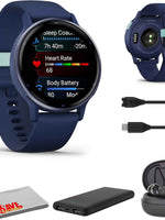Garmin Vivoactive 5 GPS Smartwatch – Health & Fitness Tracker, Metallic Navy Bezel with Silicone Band, 1.2” AMOLED Touchscreen, 11-Day Battery (Bundle)
