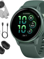 Garmin VIVOACTIVE 6 GPS Smartwatch – Jasper Green with Silicone Band, Advanced Fitness & Health Tracking, Music, Garmin Pay, Bundle with Charging Dock & Accessories