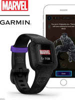 Encourage your child to stay active and engaged with the Garmin vívofit jr. 3 Marvel Black Panther Fitness Tracker. Designed for kids, this tracker features a swim-friendly, durable design and a fun Marvel Black Panther theme to make fitness exciting. Track daily activity with the pedometer, sleep monitor, and time display, and help kids build healthy habits through interactive challenges and goal setting. The long-lasting battery life of up to 1 year ensures minimal downtime and hassle-free use. Lightweight and comfortable on the wrist, it is suitable for everyday wear and swimming. With Bluetooth connectivity, the vívofit jr. 3 syncs with the Garmin Jr. app, allowing parents to track activity, assign chores, and unlock adventure-themed games. Perfect for active kids, it combines fitness, fun, and durability in one wearable.