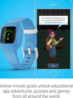 Kid-friendly fitness tracker with interactive app-based adventures