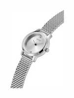 Add a touch of timeless sophistication to your look with the GUESS Ladies 25mm Silver-Tone Watch. Designed with a sleek silver-tone case and matching stainless steel bracelet, this elegant timepiece is perfect for both casual and formal occasions. The clean silver dial creates a polished, monochrome finish that complements any outfit. Built with a durable 25mm case and a comfortable 7.5-inch strap, it offers a secure fit and long-lasting wearability. With water resistance up to 30 meters, this watch easily withstands splashes and everyday exposure. Combining contemporary style with dependable functionality, this GUESS women’s watch is a versatile accessory that captures the brand’s signature modern glamour.