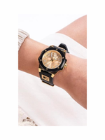 The GUESS Ladies 38mm Two-Tone Watch combines modern femininity with timeless sophistication. Its sleek 38mm case features a stylish champagne and black two-tone design, creating an effortlessly elegant look. The black silicone strap offers a comfortable 7.5-inch fit, making it perfect for daily wear without compromising style. Powered by precise quartz movement, this watch ensures reliable timekeeping day after day. With water resistance up to 50 meters (165 feet), it’s as functional as it is fashionable — ideal for both casual days and evening occasions. Beautifully balanced between luxury and practicality, this GUESS timepiece is designed for women who appreciate bold elegance and everyday versatility.