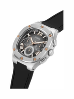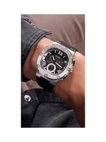 Make a confident statement with the GUESS Men’s 42mm Square Case Watch, a striking blend of modern design and classic craftsmanship. Featuring a distinctive rounded square case with screw detailing, this timepiece exudes bold sophistication. The silver-tone ombre dial adds depth and texture, creating a refined contrast against the black silicone strap that ensures exceptional comfort and adjustability. Powered by reliable quartz movement, it delivers precise timekeeping day after day. With 50 meters of water resistance, this versatile watch stands up to splashes and brief immersion, making it ideal for both professional and casual wear. Designed for the man who values both form and function, this GUESS watch brings contemporary edge to timeless style.
