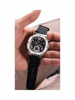 • Black silicone strap for all-day comfort.