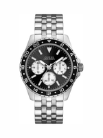 GUESS Men’s Analog Stainless Steel Watch | Black Multi-Function Dial & 44mm Silver-Tone Case