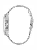 The GUESS Men’s Analog Stainless Steel Watch is a modern essential that blends durability with timeless sophistication. Designed with a 44mm brushed and polished stainless steel case, accented by a black top ring, this watch stands out with its black multi-function dial featuring day, date, and 24-hour military time displays. Protected by a durable mineral crystal, it ensures lasting clarity and resilience against daily wear. The brushed and polished stainless steel bracelet with a fold-over clasp and double push-button closure offers a secure and refined fit. With 100 meters (300 feet) of water resistance, this timepiece is perfect for both professional and casual settings. GUESS delivers sleek precision and everyday luxury in one statement piece.