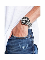 GUESS Silver-Tone Chronograph Watch with Green Bezel & Multifunction Subdials GUESS Silver-Tone Chronograph Watch with Green Bezel & Multifunction Subdials