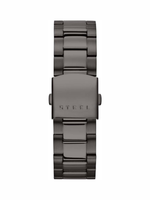 The GUESS Men’s Gunmetal Stainless Steel Quartz Watch (Model: U0668G9) delivers refined style and modern durability. Designed with a polished and brushed gunmetal stainless steel case and a matching link bracelet, this timepiece offers a seamless monochrome finish that enhances any look. The 45mm case is protected by a durable mineral crystal, ensuring resistance against everyday scratches. Powered by precise quartz movement, it ensures reliable timekeeping for both casual and formal occasions. With a deployment buckle closure for a secure fit and water resistance up to 50 meters (165 feet), this watch is built for confident daily wear with understated elegance.