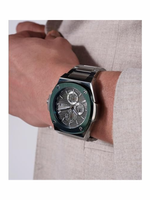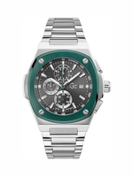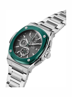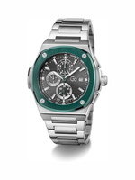 GUESS Silver-Tone Chronograph Watch with Green Bezel & Multifunction Subdials