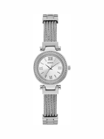 The GUESS Women’s Quartz Watch combines elegance with everyday practicality. Designed with a 26.5mm polished stainless steel case, it showcases a silver-tone dial adorned with Roman numerals and matching dial markers for classic sophistication. The durable mineral crystal protects against scratches, ensuring long-lasting clarity. Its stainless steel bracelet features self-adjustable links, allowing a comfortable, customized fit. Perfect for work, casual outings, or evening events, this timepiece effortlessly complements any ensemble. Sleek, versatile, and refined, the GUESS 26.5mm Quartz Watch embodies timeless style for the modern woman who values both design and functionality.