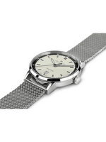 The Hamilton American Classic Intra-Matic Automatic Watch exudes vintage charm with modern Swiss engineering. Featuring a 40mm stainless steel case and a warm beige dial, this timepiece offers a minimalist yet refined aesthetic ideal for both business and casual settings. Powered by a Swiss automatic movement, it delivers accurate self-winding performance, eliminating the need for batteries while showcasing reliable mechanical precision. The silver stainless steel bracelet with folding clasp provides polished sophistication and lasting comfort. The scratch-resistant sapphire crystal with antireflective coating ensures exceptional clarity and durability. With water resistance up to 50 meters, it’s suited for everyday wear. Designed without an open case back for a clean appearance, the Intra-Matic blends understated elegance with technical excellence. Supported by a 2-year international warranty, this model is a perfect choice for those seeking a classic automatic watch with timeless appeal.