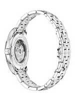 Refined design and Swiss craftsmanship converge in the Hamilton Jazzmaster Viewmatic Automatic Watch. Powered by a reliable Swiss automatic movement, this sophisticated timepiece offers precise self-winding performance for everyday elegance. The 40mm stainless steel case houses a sleek silver analog dial, while the open case back provides a captivating view of the intricate mechanical movement in action. A stainless steel bracelet with a folding clasp enhances its polished, contemporary style, delivering both comfort and durability. The scratch-resistant sapphire crystal ensures enduring clarity, while 50-meter water resistance offers practical resilience for daily wear. Perfect for professional or formal settings, the Jazzmaster Viewmatic blends heritage with innovation. Backed by a 2-year international warranty, it is a symbol of precision, craftsmanship, and timeless elegance.