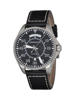 Hamilton Khaki Aviation Pilot Day Date Automatic Watch – Swiss Made, 42mm Stainless Steel Case, Black Dial, Black Leather Strap