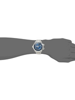 Blue analog dial with day and date display for functional elegance