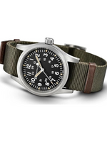 Hamilton Khaki Field Mechanical 38mm Watch – Swiss Made, Stainless Steel Case, Black Dial, Green NATO Strap