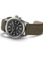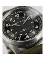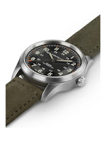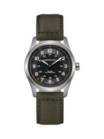 Hamilton Khaki Field Titanium Auto Watch – Swiss Made, 38mm Titanium Case, Black Dial, Green Leather Strap