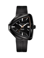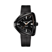 Hamilton Ventura Elvis80 Automatic Watch – Swiss Made, 42.5x44.6mm Black PVD Stainless Steel Case, Black Dial, Black Rubber Strap