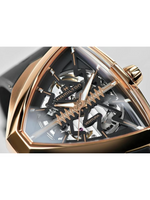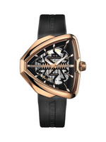 Hamilton Ventura Elvis80 Skeleton Automatic Watch – Swiss Made, 42.5x44.6mm Rose PVD Stainless Steel Case, Black Dial, Black Rubber Strap