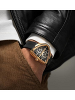 The Hamilton Ventura Elvis80 Skeleton Automatic Watch is a striking statement of modern design and Swiss craftsmanship. Featuring a distinctive 42.5mm x 44.6mm rose PVD stainless steel case, this timepiece showcases a captivating black skeleton dial, offering a view into the intricate Swiss automatic movement. Designed for the bold and discerning, the Ventura Elvis80 is inspired by the legacy of the iconic Ventura series, blending futuristic style with technical excellence. The black rubber strap provides durability and comfort, secured with a pin buckle for a sporty yet sophisticated look. Protected by scratch-resistant sapphire crystal with antireflective coating, the dial remains sharp and legible under any light condition. With an open case back revealing the mechanical heart of the watch and water resistance up to 50 meters, it’s built for both style and reliability. Backed by a 2-year international warranty, the Ventura Elvis80 Skeleton Auto stands as an avant-garde choice for collectors and enthusiasts.
