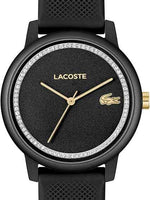 Lacoste 12.12 Go Women’s Aluminium Quartz Watch – Black Dial, Silicone Strap, Elegant & Sporty 35mm Timepiece