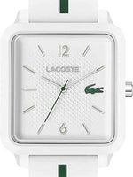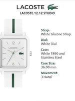 Lacoste 12.12 Studio Men’s Quartz Watch – White Square Case, Silicone Strap, Sporty Modern Design, 43mm