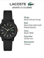 Lacoste 12.12 Women’s Quartz Watch – Black, TR90 Case, Silicone Strap – Iconic Sporty Premium Fashion Timepiece