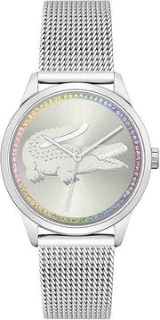 Lacoste 2001259 Ladycroc Women’s Quartz Watch – Stainless Steel Case, Silver Mesh Bracelet, Feminine Modern Design