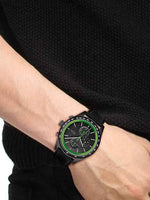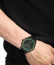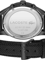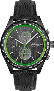 Elevate your wristwear with the Lacoste Apext Men’s Quartz Chronograph Watch, a striking timepiece inspired by the bold aesthetics of classic racing watches. Featuring a 44mm black ionic plated stainless steel case, sleek black dial, and refined black leather strap, this chronograph balances modern sportiness with timeless elegance. The vertically brushed dial is enhanced with sub-dials at 12, 6, and 9 o’clock, while the Lacoste crocodile at 3 o’clock adds a signature touch. Equipped with a quartz chronograph movement, it ensures precise timekeeping and stopwatch functionality for performance-driven lifestyles. Protected by a durable mineral crystal and water resistant up to 50 meters (5 ATM), the Apext offers both resilience and style. Perfect for work, weekends, or special occasions, this chronograph is a bold expression of confidence and sophistication.