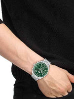 The Lacoste Boston Men’s Chronograph Watch is a versatile timepiece that blends modern design with refined craftsmanship. Featuring a 42mm stainless steel case with a bold green aluminum tachymeter bezel, this chronograph delivers both sporty appeal and everyday elegance. The green dial is accented with three chronograph subdials, offering stopwatch precision alongside classic time display. A stainless steel H-link bracelet ensures comfort and durability, while the quartz chronograph movement guarantees accuracy with minimal upkeep. With 5 ATM water resistance, the Boston is suitable for light swimming, showers, and daily wear. Designed for men who appreciate a modern, functional accessory, this Lacoste chronograph transitions effortlessly from workday polish to weekend style, making it an ideal statement piece and a perfect gift.