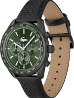 The Lacoste Boston Men’s Chronograph Watch blends timeless elegance with modern functionality, making it the ideal accessory for the contemporary man. Designed with a 42mm stainless steel case and an eye-catching colored aluminum tachymeter bezel, this chronograph is as stylish as it is functional. The multi-function dial features three subdials for precise stopwatch capability, while quartz chronograph movement ensures accurate and low-maintenance performance. Built to handle daily wear, the Boston is water resistant up to 5 ATM (50 meters), suitable for splashes and brief immersion in water. Its punched leather strap or stainless steel bracelet options provide versatility to suit both casual and formal looks. Offered in a variety of bold colorways—such as Moss Green, Navy Blue, Black/Gold, and Blue Stainless—this watch delivers sporty sophistication with the unmistakable Lacoste touch.