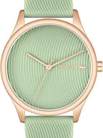 Inspired by the pleated tennis skirt, the Lacoste Falda Women’s 3H Quartz Watch blends sporty style with refined elegance. Its pale rose gold ionic plated stainless steel case perfectly frames the vibrant green dial, featuring the iconic Lacoste crocodile logo.