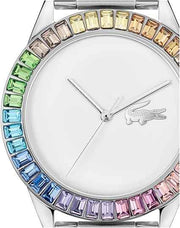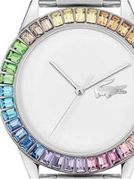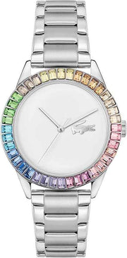 Discover timeless elegance with the Lacoste Ladycroc Women’s Quartz Watch, a refined statement piece designed for the modern woman. Featuring a 36.5mm stainless steel case, sleek silver bracelet, and a white enamel dial, this watch is elevated by a baguette crystal bezel in vibrant Lacoste-inspired hues. Its quartz movement ensures reliable precision with minimal upkeep, making it as practical as it is stylish. The Ladycroc is crafted with meticulous attention to detail, offering a minimalist yet luxurious aesthetic that transitions seamlessly from day to evening wear. With water resistance up to 50 meters (5 ATM) and durable construction, it balances beauty with everyday functionality. Perfect as a gift or a personal indulgence, the Lacoste Ladycroc embodies sophistication, sparkle, and contemporary charm.