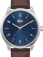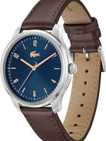 Lacoste Lisbon Men’s 3H Quartz Watch – Stainless Steel Case, Navy Dial & Brown Leather Strap – Classic & Modern 42mm Timepiece