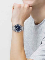 The striking blue dial is paired with luminous index markers for improved readability, while the bold stainless steel & aluminum tachymeter bezel adds a sporty edge. Powered by quartz movement, it ensures accurate and low-maintenance timekeeping.